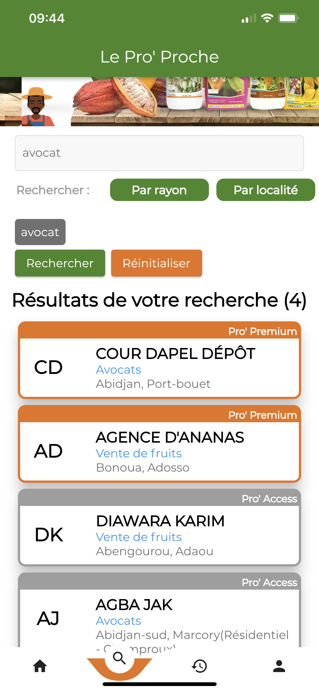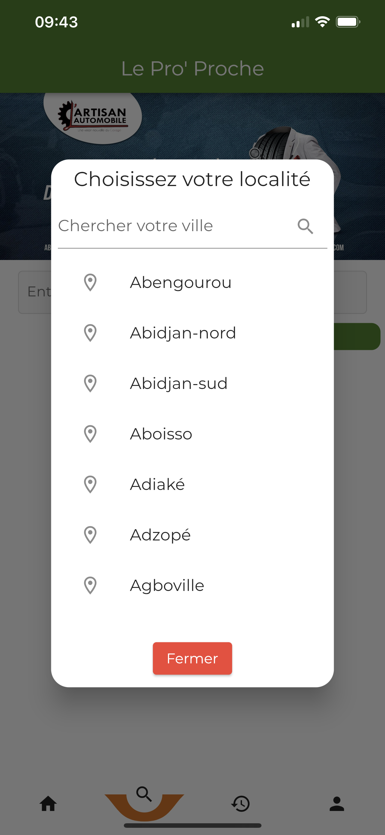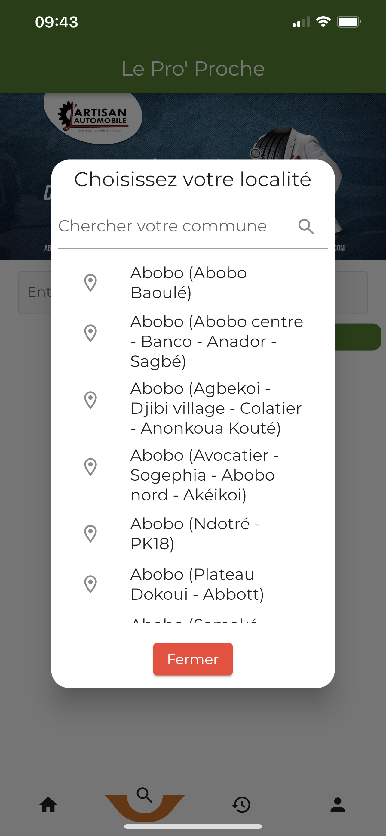 Rechercher des professionels d'un métier dans une commune/localité précise.